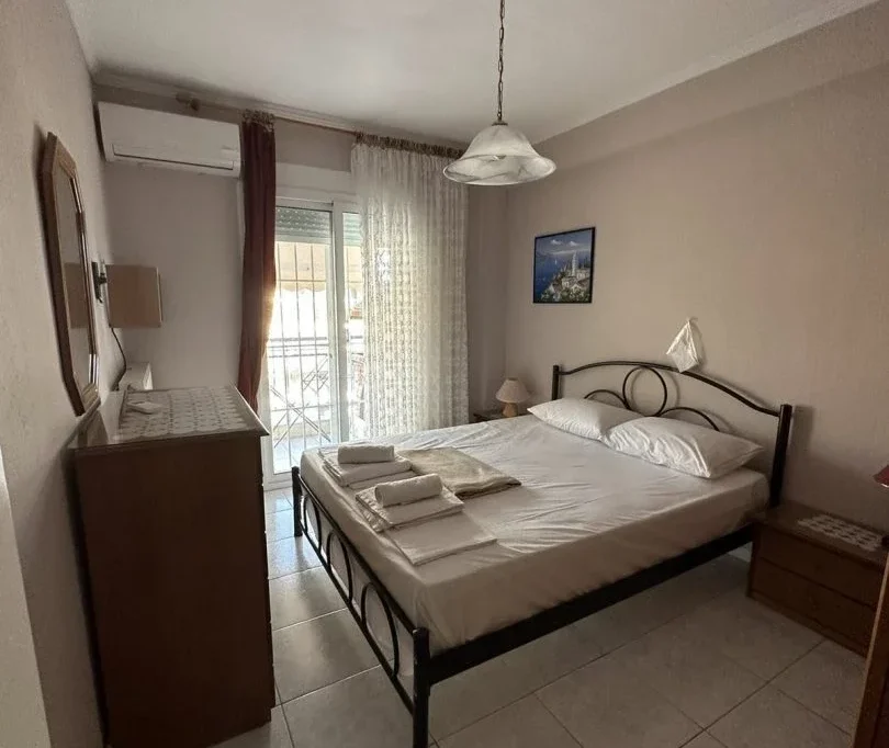 Apartman poseduje jednu spavacu sobu sa francuskim ležajem, u kojoj se nalazi klima uredjaj. U drugoj prostoriji se nalazi kompletno opremljena kuhinja sa trpezarijskim stolom i jos dva single ležaja, ova prostorija takodje ima svoj klima uredjaj. Iz obe sobe se moze izaci na terasu koja ima bočni pogled ka moru.
